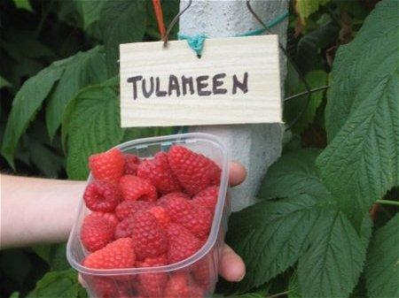 Tulameen spada med rdeče maline, ki rodijo na dvoletnih poganjkih. Veje so močne, pokončne in visoke (dosežejo tudi 3 m višine). So brez trnov oziroma so trni le v spodnjem delu vej, kar olajšuje obiranje.